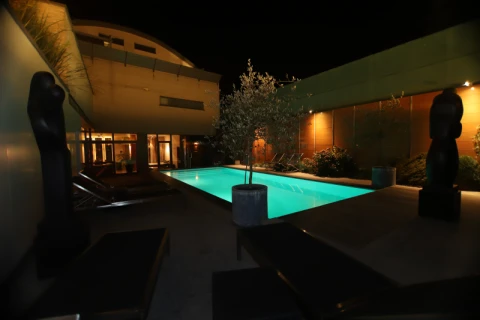 Mooie, zeer ruime en nette welnessruimte. We genoten vooral van de sauna en yacuzzi en het zwemmen buiten in de eerste lentezon. Ook de massage is een echte aanrader! Hier stap je als herboren terug buiten.