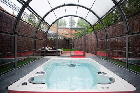 Onze Washington Unit biedt u alle comfort die u maar kan wensen ... een luxueuze en eindeloze jaccuzzi - zwemspa op de begane grond en een gezellig stoombad , Finse sauna, infrarood sauna en 2 massage zetels
