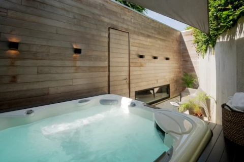 • Buiten jacuzzi: Beleef het ultieme genot in onze jacuzzi, gelegen in een afgesloten en knus tuintje voor maximale privacy.
