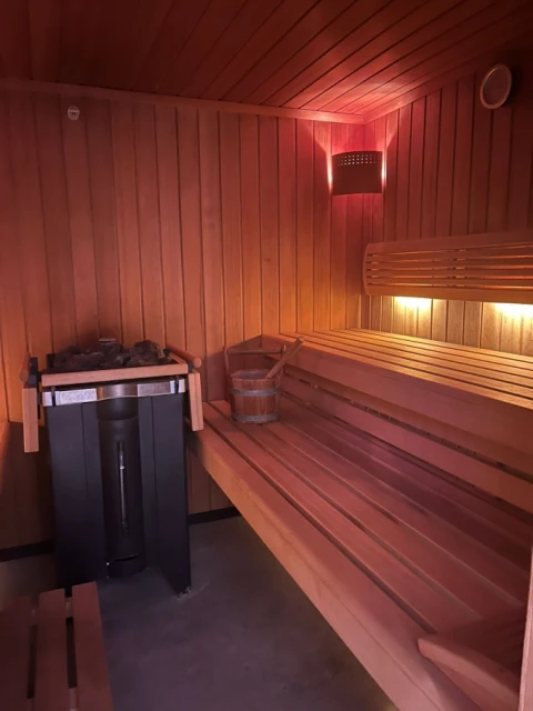 • Finse sauna: Ontspan in de warmte van onze traditionele Finse sauna, ideaal voor het verlichten van stress en het verbeteren van je welzijn.