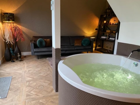 Geniet met elkaar van een ontspannen tijd in onze luxe suite. waar u samen lekker kunt ontspannen en genieten van uw wellness moment, in deze tijd kunt u genieten van de sauna, de jacuzzi en de ruime douches met verzorgingsproducten van Rituals. Daarna kunt u relaxen in de grote tuin met relaxstoelen of knus op de bank. Tijdens uw verblijf mag u gebruik maken van de badjassen en handdoeken. Neem gerust een kop koffie of thee.