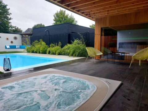 In onze privé wellness vind je alles wat je nodig hebt om te ontsnappen aan de koude, donkere en regenachtige dagen. Vanuit onze overdekte jacuzzi, panoramische sauna, infraroodbank en relaxruimte heb je zicht op de tropische tuin met zwembad. Op die manier waant u zich op een paradijslijk eiland.